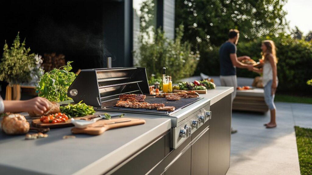 Le barbecue au gaz séduit par sa facilité d’utilisation et son allumage instantané. Ce type d’équipement offre un contrôle précis de la température grâce à ses brûleurs réglables, permettant de cuisiner différents aliments simultanément à des chaleurs variées. Les modèles proposés par des marques reconnues comme Weber, Napoléon ou Broil King garantissent une durabilité exceptionnelle et des performances constantes. L’absence de fumée excessive et la propreté relative de cette solution en font un choix privilégié pour les cuisines d’été installées près de la maison.
